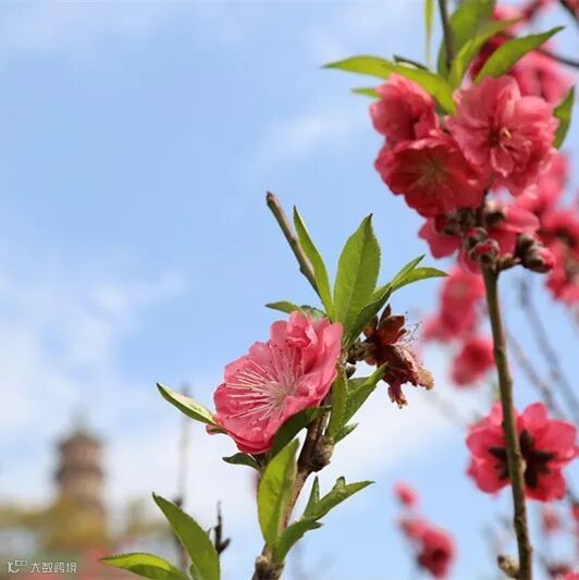 桃花别日红 宝塔映苍穹