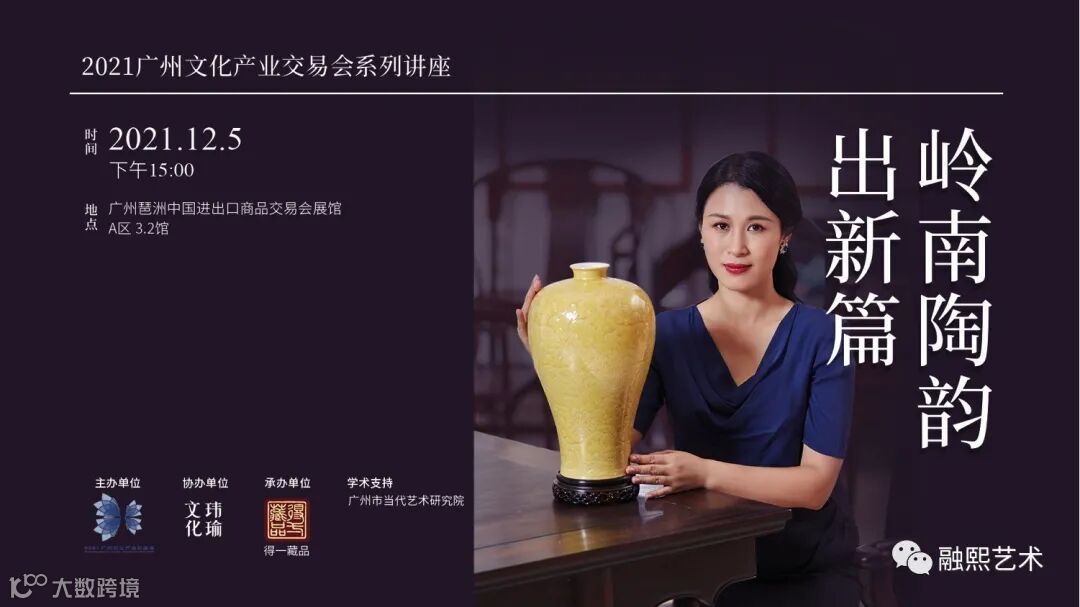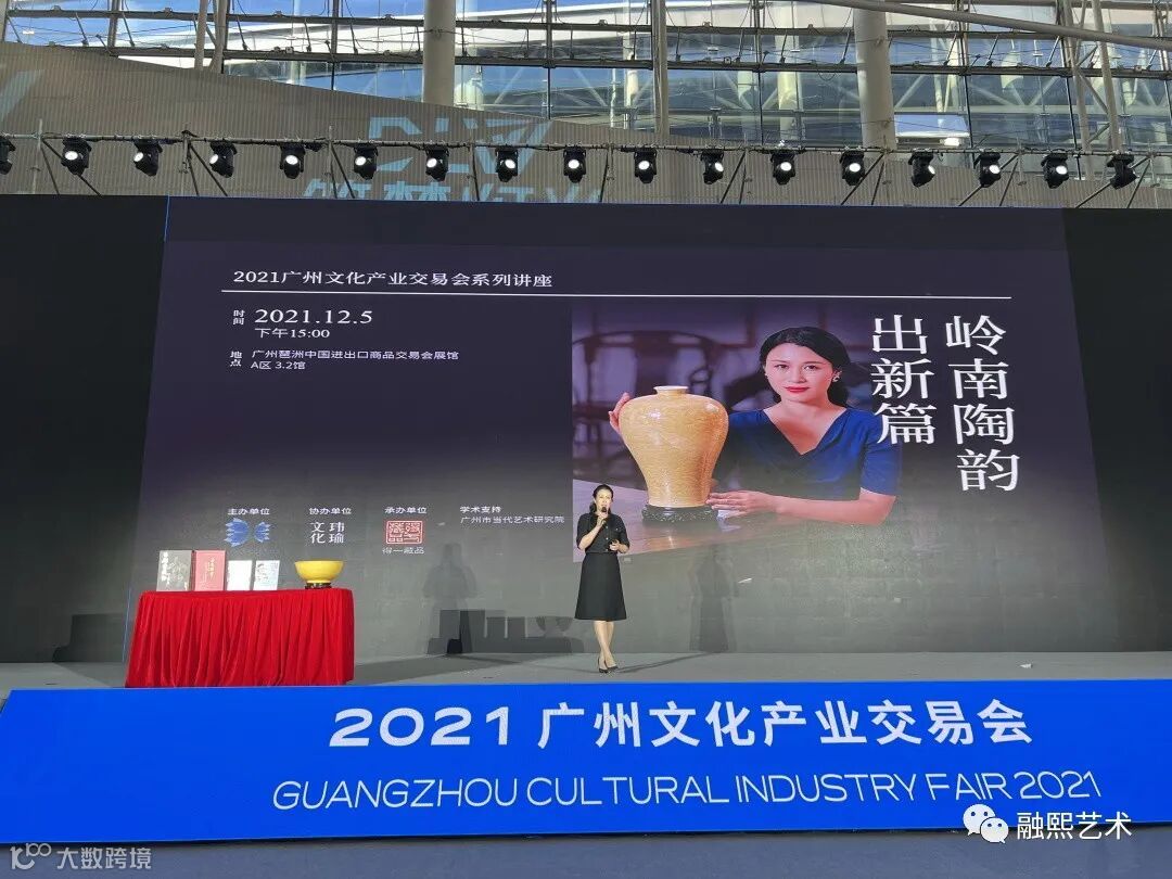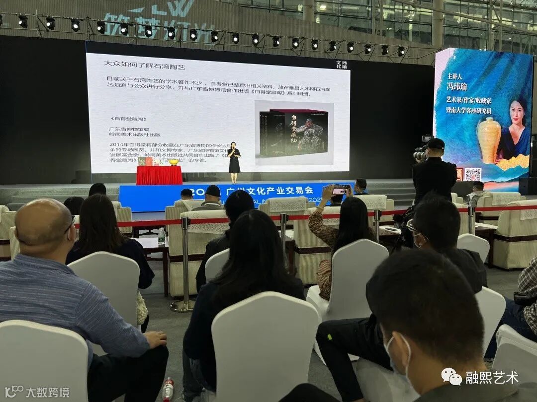 在2021年12月5日广州文化产业交易会(简称“广州文交会”)上,艺术家、作家、收藏家冯玮瑜老师受邀作2021广州文化产业交易会系列讲座之——《岭南陶韵出新篇》讲座,围绕国家级非物质文化遗产之一、南国艺术瑰宝——石湾陶塑进行主题演讲。