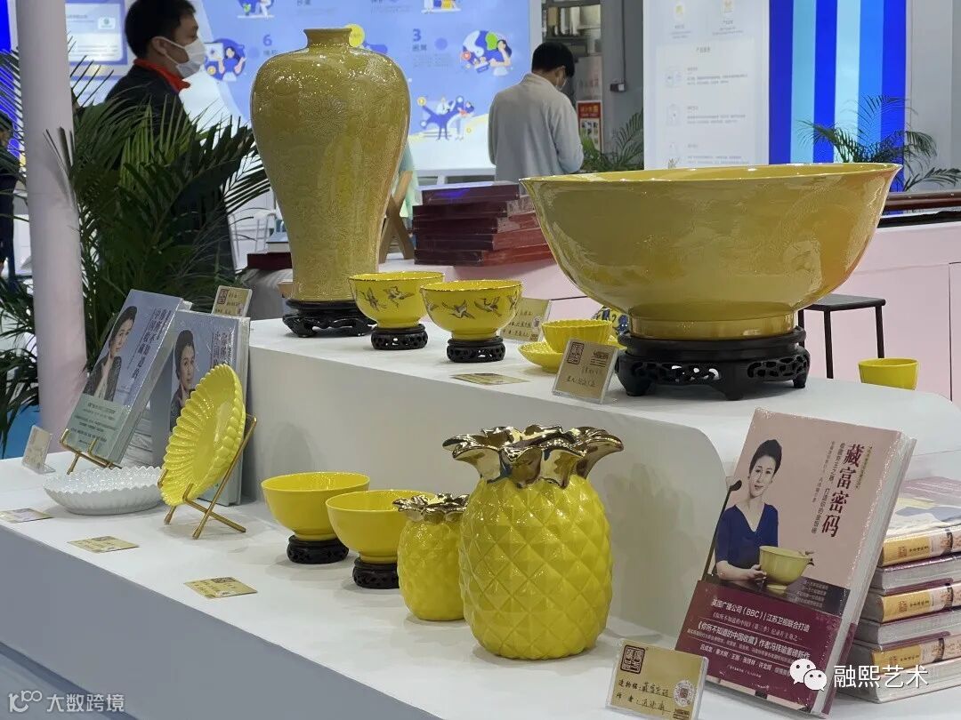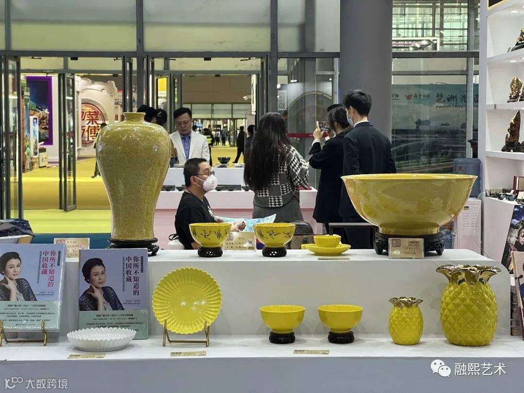 广州文交会上冯玮瑜老师复烧的瑜窑黄釉瓷器