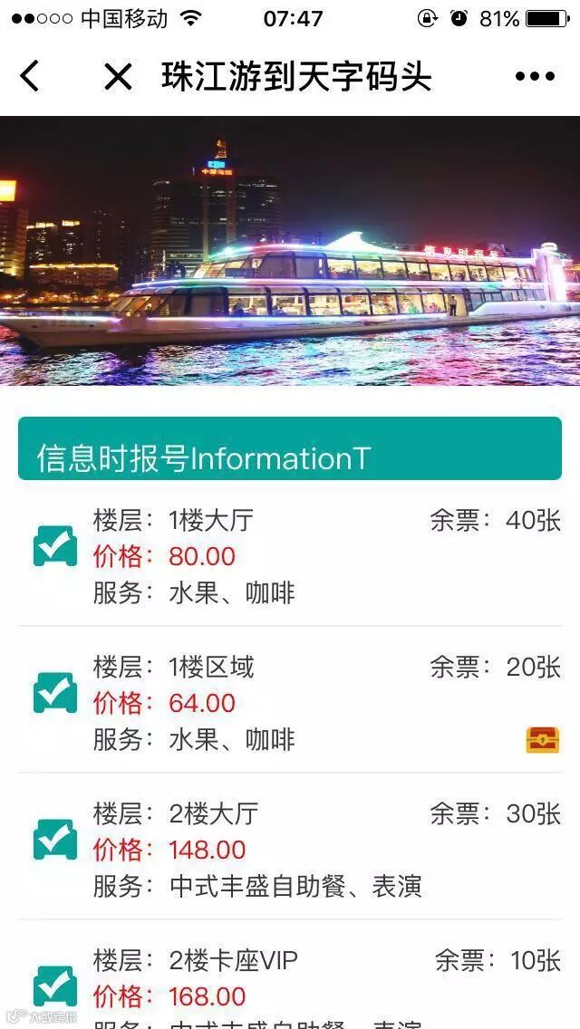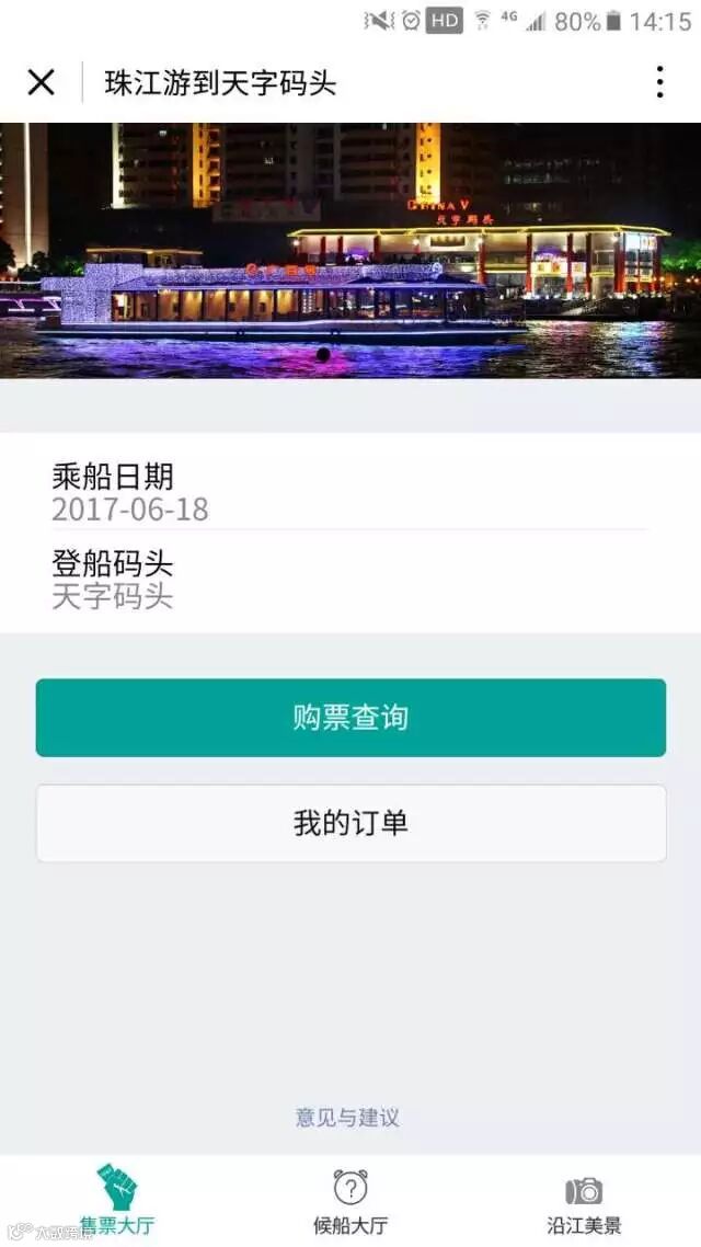 打开微信,进入“天字码头珠江夜游+”小程序购票大厅,选择6月18日航班。