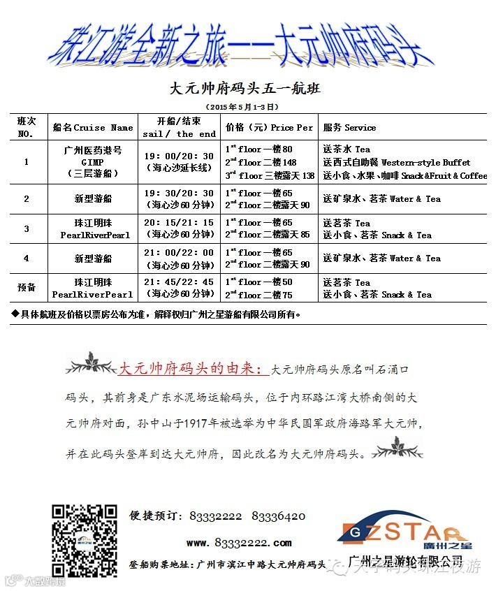 地址:广州市海珠区滨江中路大元帅府码头