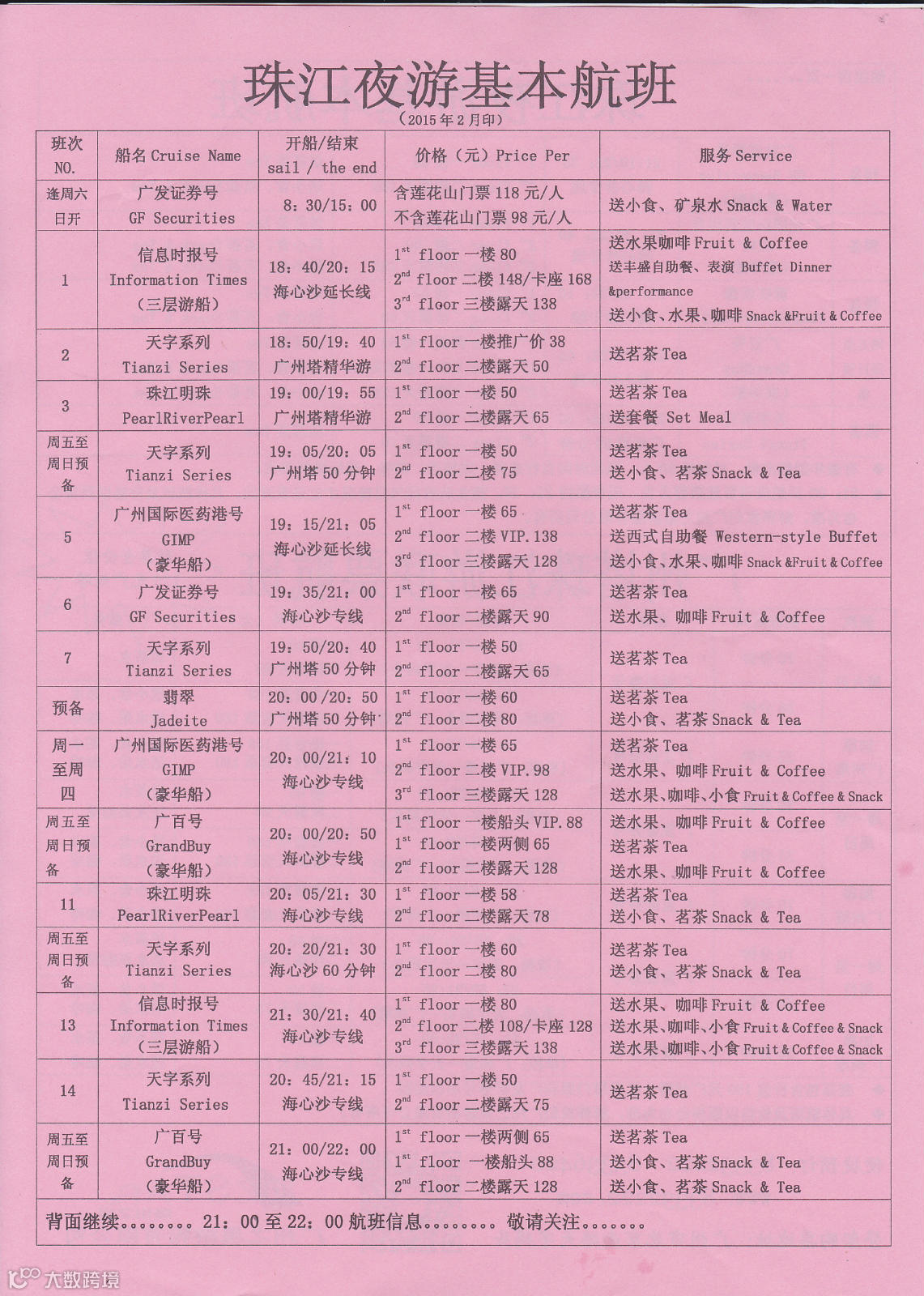 导读:又到周末了,看准我们的夜游航班约起咯~戳开大图进行查看哦↑↓↑还有广州塔珠江游联票航班~海珠区的小伙伴们千万