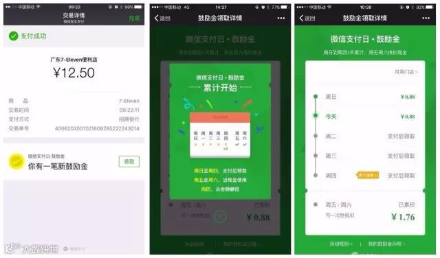 PS:没在成功页领取的用户可在微信支付公众号的鼓励金模板消息中点击领取