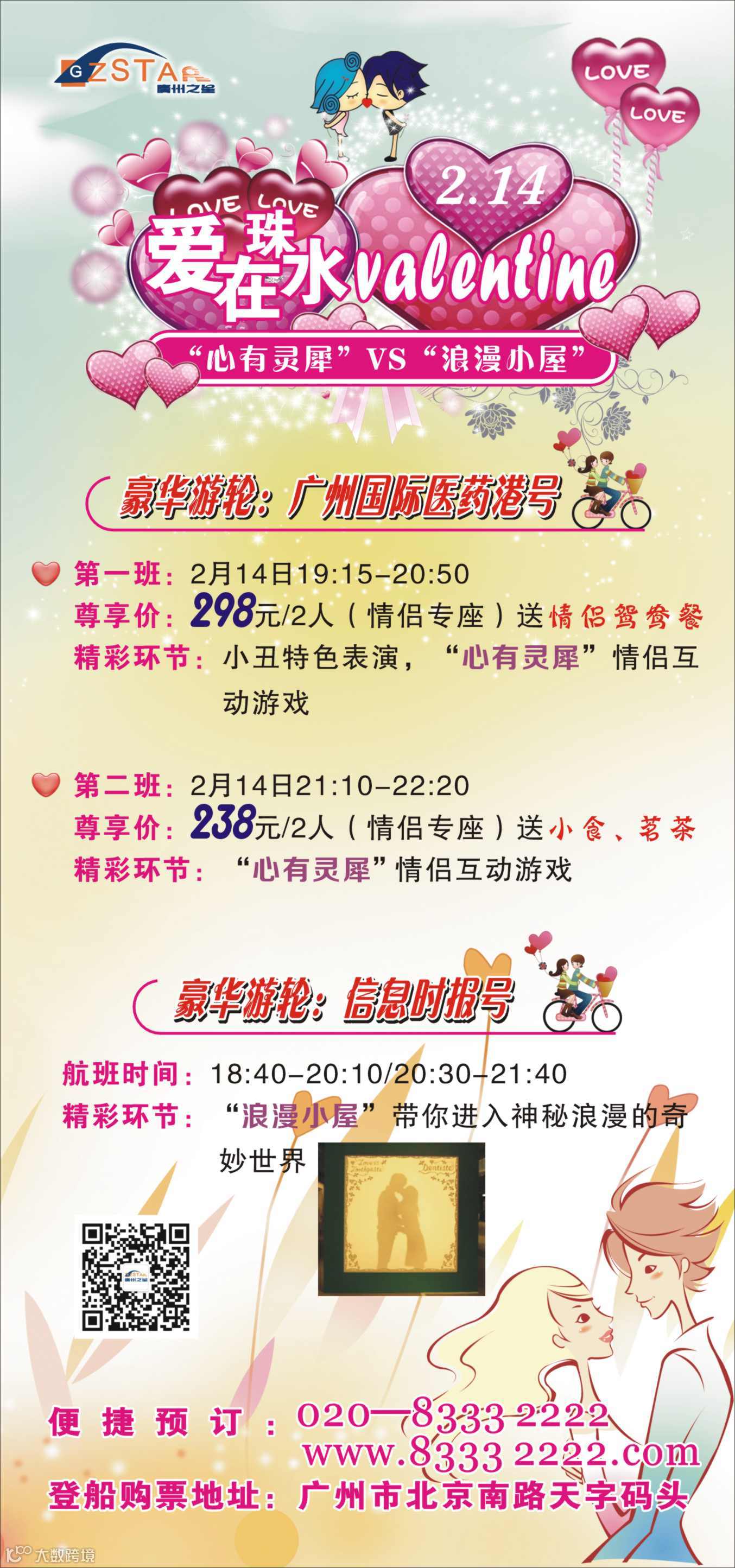一年一度的情人节即将到来了啵!!年轻人都在挖空心思该怎么和另一半度过这个世界上最甜蜜的节日。你想过一个与众不同的情人节吗?不妨来参加天字码头的“爱在珠水valentine”情侣航班,送给最爱一份亘古不变的珠水情吧!