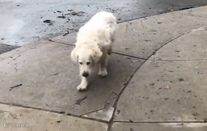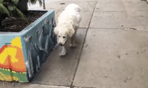 看这只大金毛满脸微笑着散步的样子...