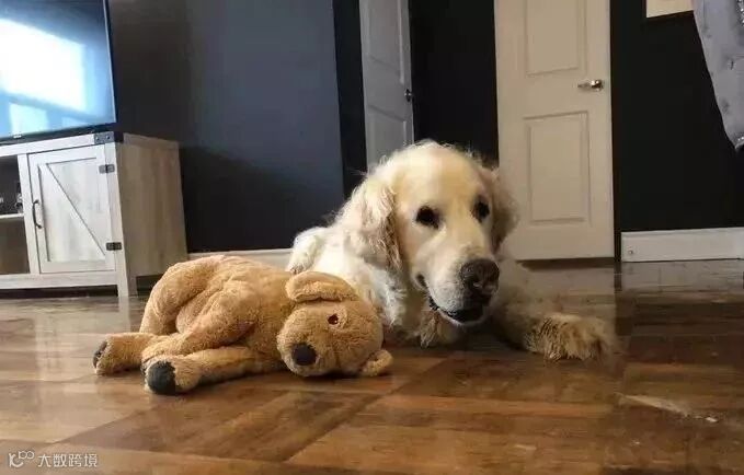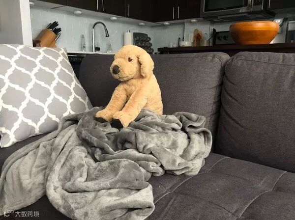 它最爱的狗狗玩偶,孤单的坐在沙发上...