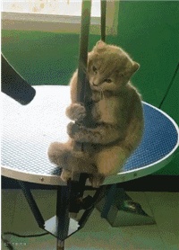 猫咪:我还是抱紧点吧,万一吹跑了可咋整啊!