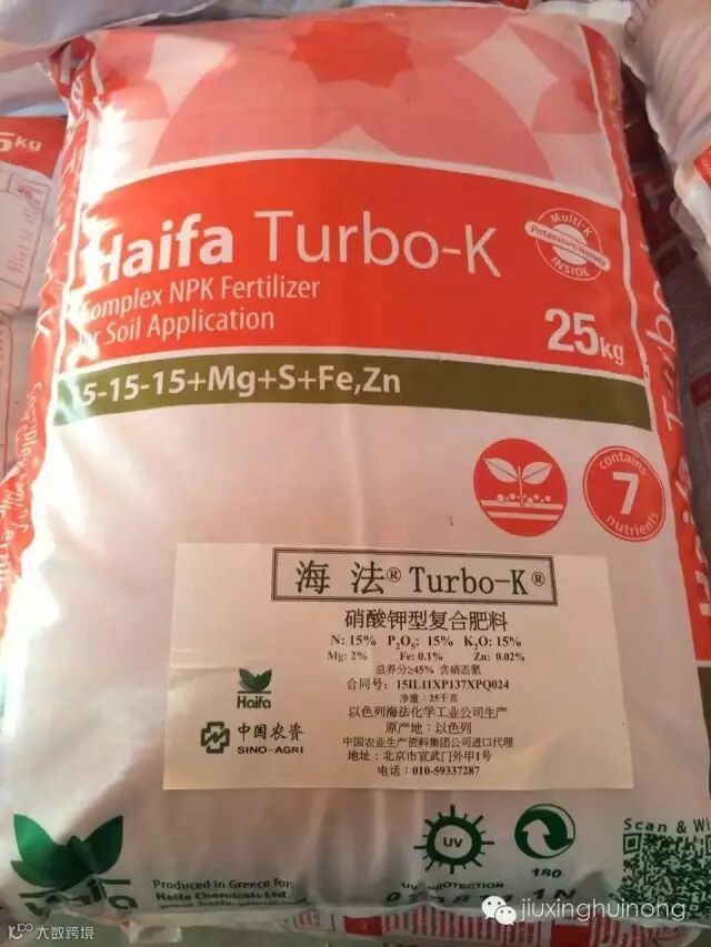 海法硝酸钾基水溶性复合肥料系以色列海法原厂原包生产的全球第一款水溶性硝酸钾作为钾源的复合肥料。包含N,P,K,Mg,S,Fe,Zn等多种营养元素。