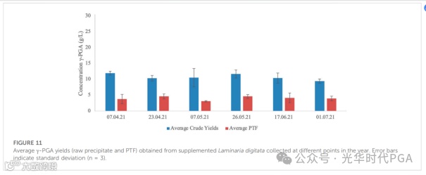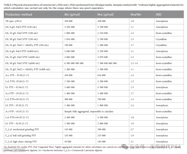2. 数据表明,当分别在7月和4月的相反培养时间点分离时,L. digitata和S. latissima都能够支持高摩尔质量无定形γ-PGA(4,500 kDa)的合成。