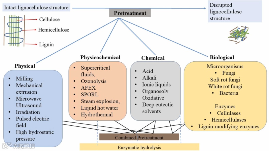 图 4.普遍报道的木质纤维素生物质预处理技术