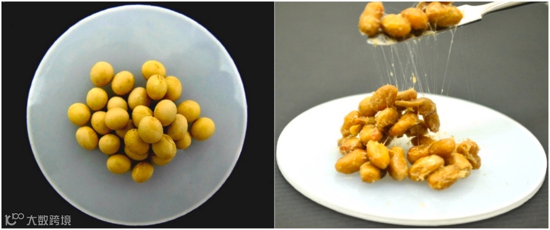 图 1.枯草芽孢杆菌(纳豆)发酵前后的大豆显示出γ-PGA存在的特征粘度