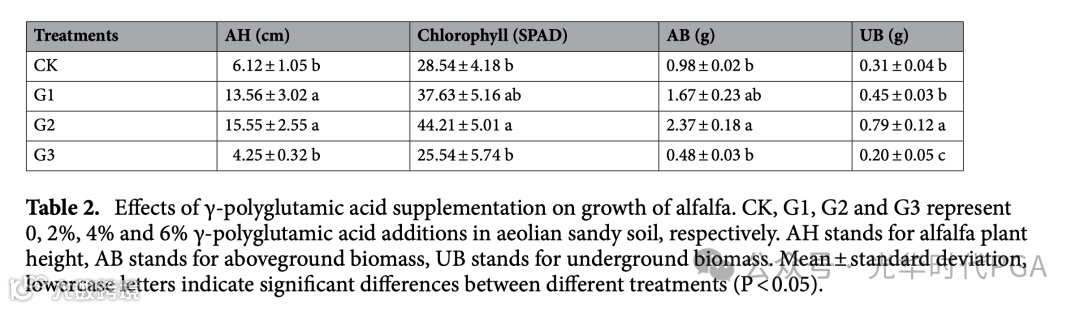 文案 | 数据来源Guo, Z., Wang, J., Chen, T. et al. Effects of γ-polyglutamic acid supplementation on alfalfa growth and rhizosphere soil microorganisms in sandy soil. Sci Rep 14, 6440 (2024).