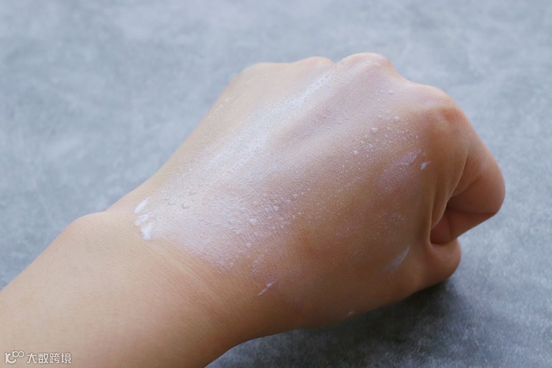 涂抹时真心一抹就开,手感嘛很丝滑,哈哈哈哈!由于里面成分都是韩方有机提取物,所以能增加肌肤的含水量,看!小水珠都布满在肌肤上。根本不会搓泥!