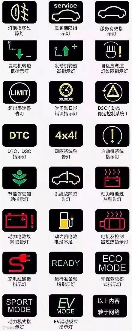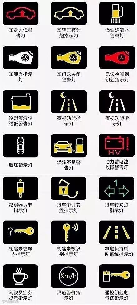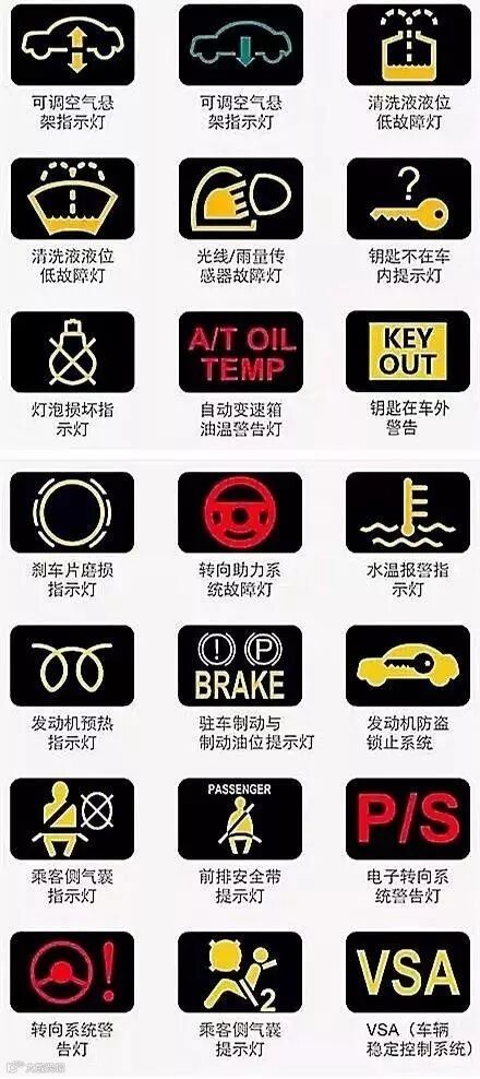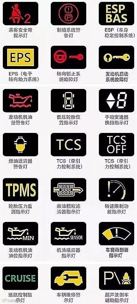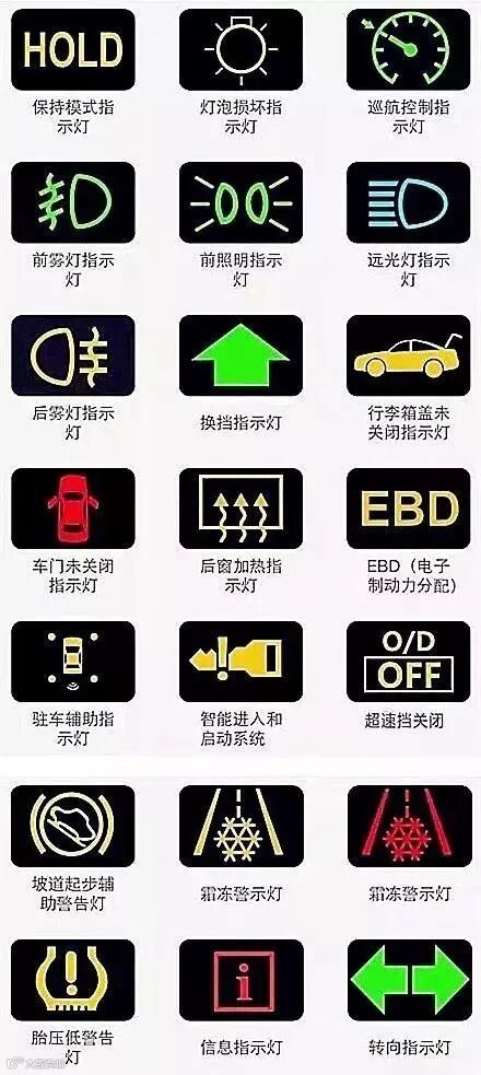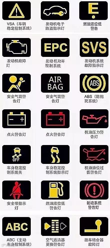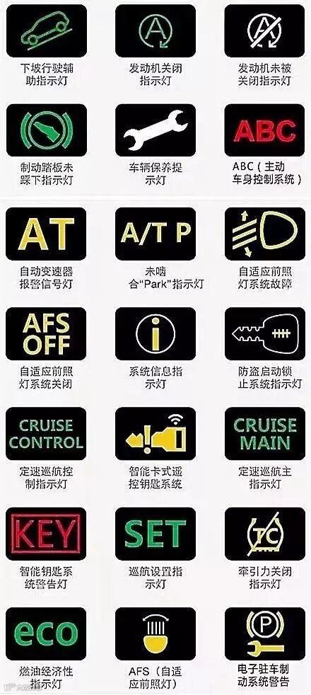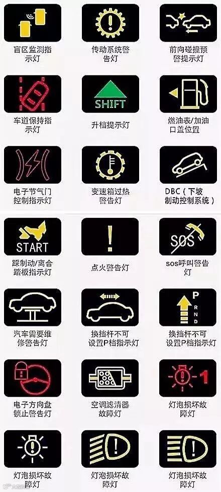 大家可以把这几张图片保存起来,万一某一天自己爱车的故障灯亮了,又不知道怎么回事,就可以打开这篇文章对照着来看,那就放心很多了!