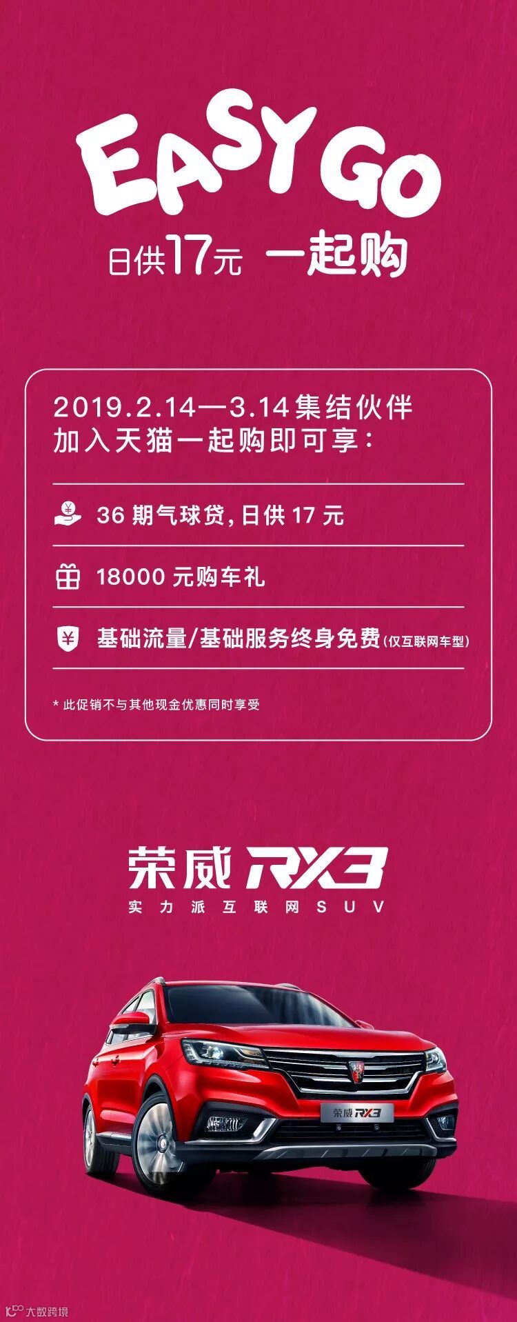 现购买荣威RX3不但只需日供17元