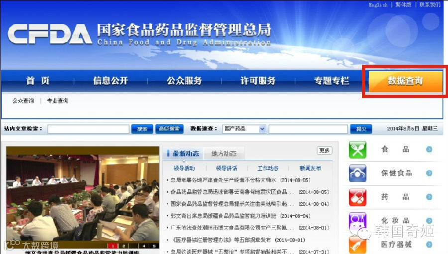 步骤一:国家药监局官网页面右侧点击【数据查询】;