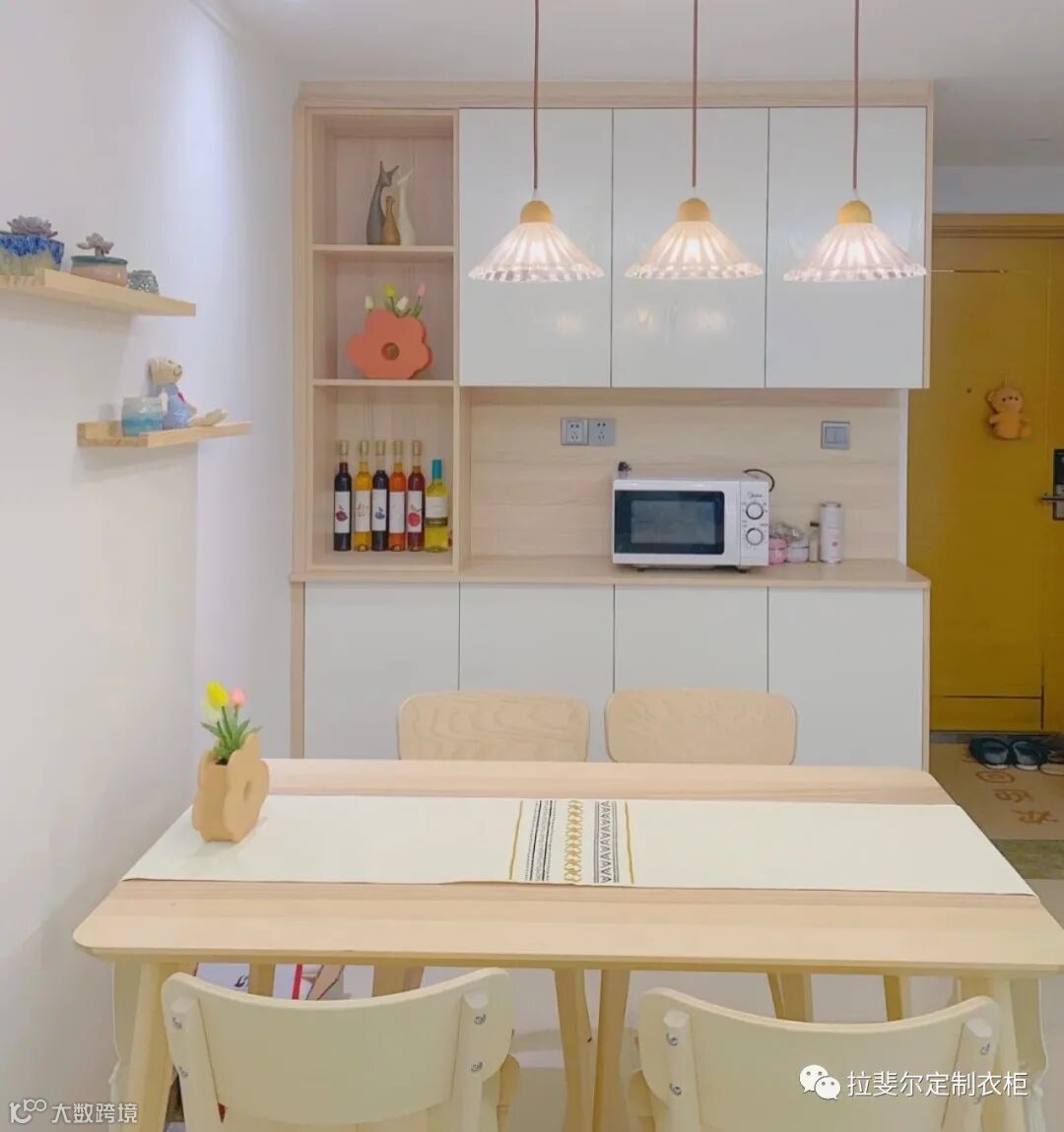 餐边柜:等于是家里的一个收纳柜,家里的杂物、小物件都可以收纳到餐边柜里面,充足的收纳储物空间,是保持空间的简洁与实用的关键