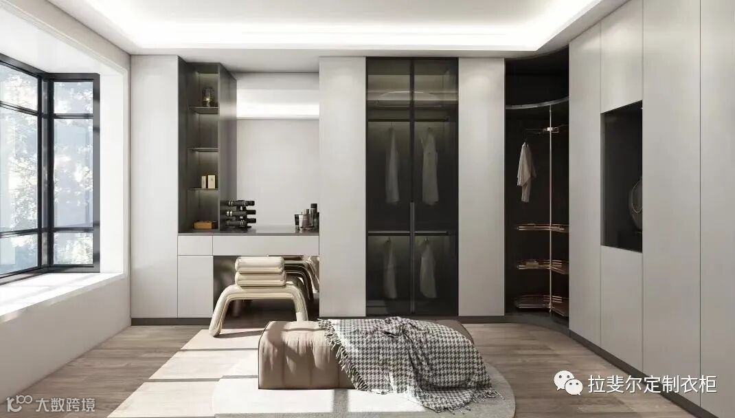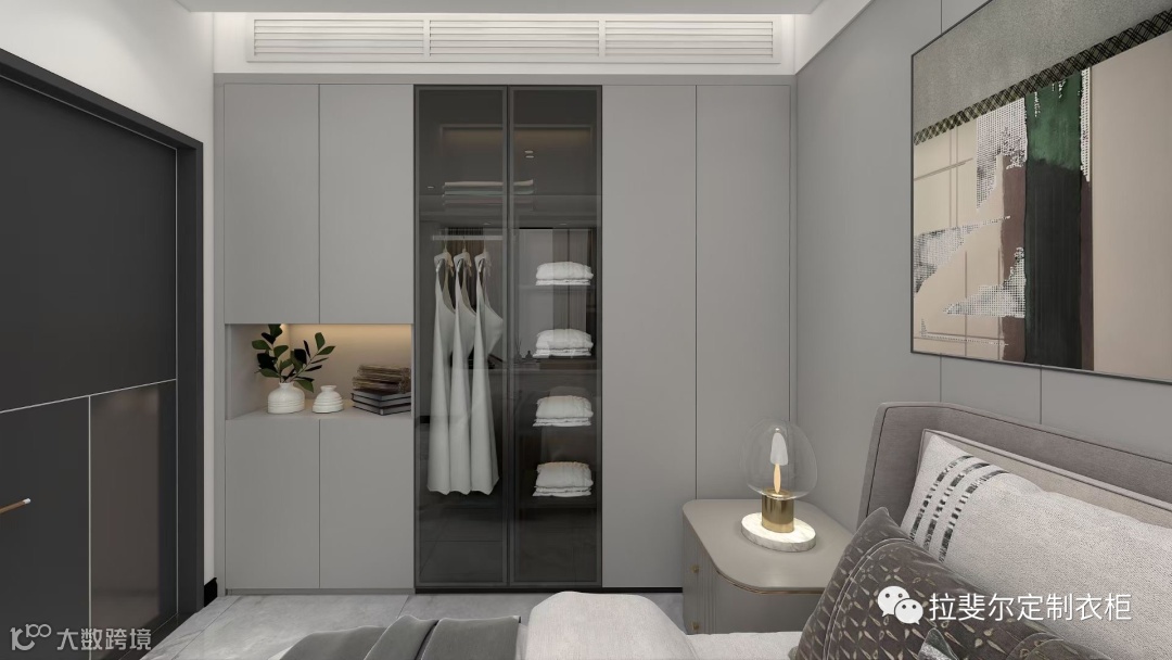 所有衣物都明朗地呈现在眼前,减少了盲目翻找衣物的不便,使衣物的存放由杂乱无章变得井井有条。玻璃门衣柜通透明亮简洁大气,大空间,小空间都可以用哦!