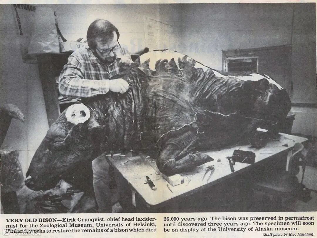 这个故事中被科学家们品尝的动物是一头沉睡在冻土中的西伯利亚野牛(Bison priscus),最初于1979年在阿拉斯加被人们发现。