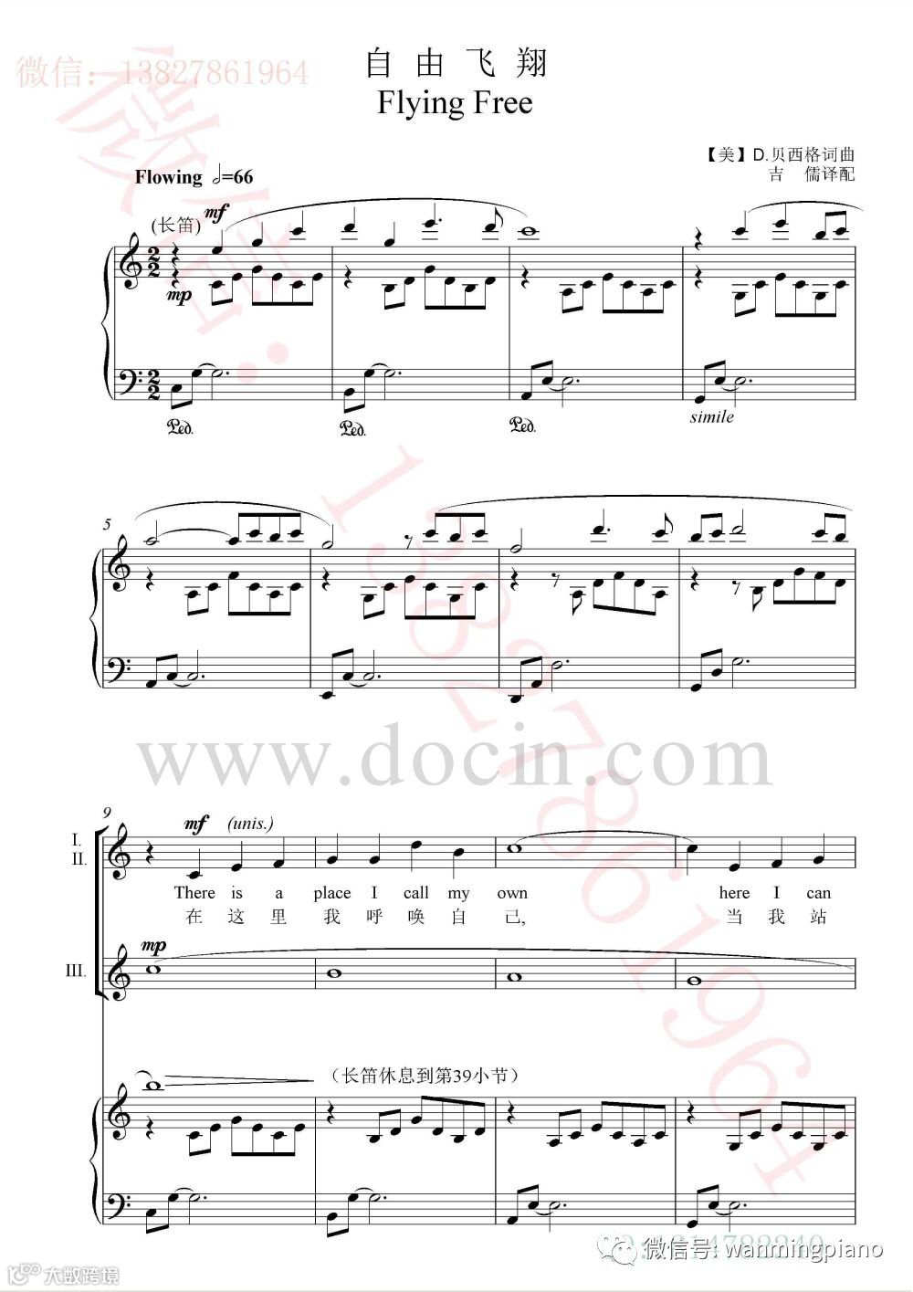2、学习并回课新歌曲《自由飞翔》,第9到39小节,跟随上课音频,复习。