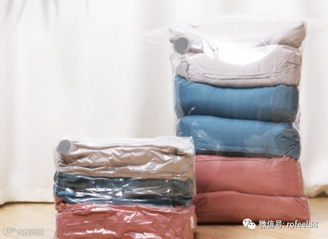 前面提到的过季衣物,可以用真空收纳袋收纳,将胖乎乎的棉被、枕头变得更苗条,大大节省了空间。再把收纳袋放置在衣柜顶部即可。