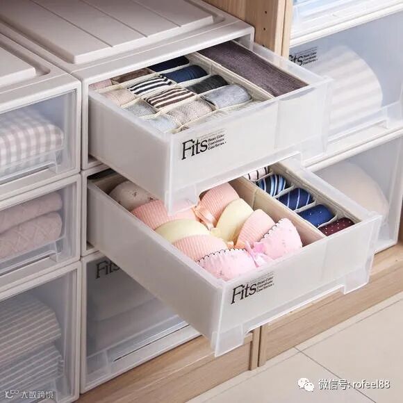内衣裤、袜子这些小件的衣物用一个柜子就能收纳好,内衣叠放立好,既能保护内衣不变形,又能节省收纳空间,拿取方便。