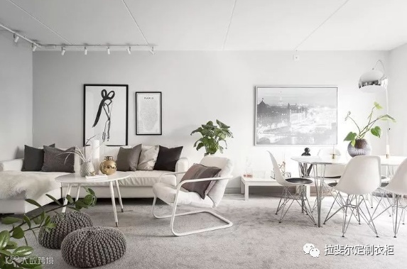它常以白色为主调,局部采用鲜艳的纯色软饰、绿植加以点缀;或以黑白为主调,不加其他颜色,而是用保留原始质感的木质家具,力求表现自然舒适的生活意趣。