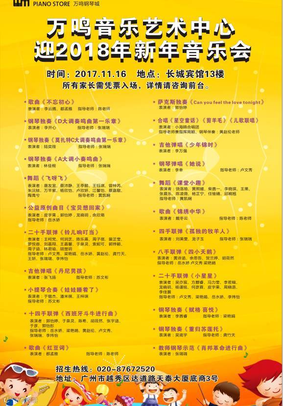 尊敬的各位万鸣小学员家长,一年一度的万鸣音乐艺术中心新年音乐会即将开始啦。