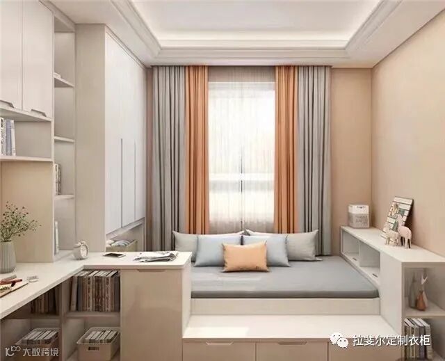 1、卧室榻榻米:集居住、收纳、娱乐于一体的多功能空间。