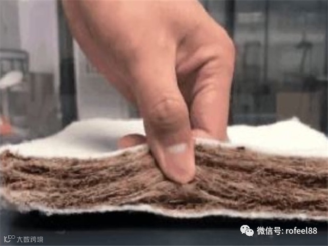 胶黏椰棕只能看到椰棕纤维,胶水用量大的甚至可以看到胶水残留。环保热压椰棕通过高温热压后可看到白色纤维与椰棕纤维交错结合。