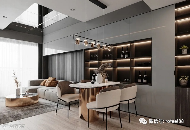 在家里装个吧台,喝酒不用去酒吧。吧台连接酒柜,取酒区和品酒区完美融合,让品酒更显惬意,营造了一种格调和浪漫感,同时还拥有细致的功能分区,强大的储酒空间,是爱酒人士心仪的心头好。
