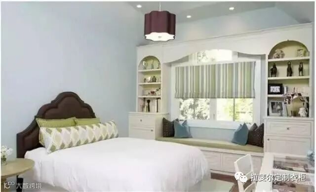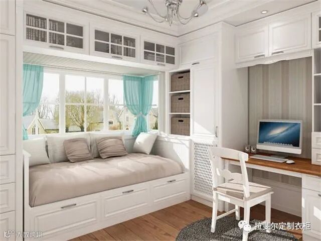 4、衣柜:相信住过商品房的人都会知道,家里的储物空间不能少,少了很多东西都会没地方放,摆在外面显得整个家都是乱的,如果家里有飘窗的,记得利用起来,安装一个衣柜非常实用,可以存储大量的生活物品,缓解家中收纳空间不足的问题。