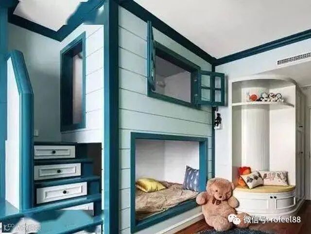 拉斐尔家具定制来给大家讲讲儿童房设计,儿童房整体设计也是蛮酷的,有点像城堡一样的双人床设计,孩子们住在这里肯定很喜欢,整体风格很梦幻,窗边还摆满了孩子们的玩具,孩子就算不出门也可以玩一整天了。楼梯处还有很多的收纳区,可以用来储存孩子们的玩具,整个房间既美观又超级实用。