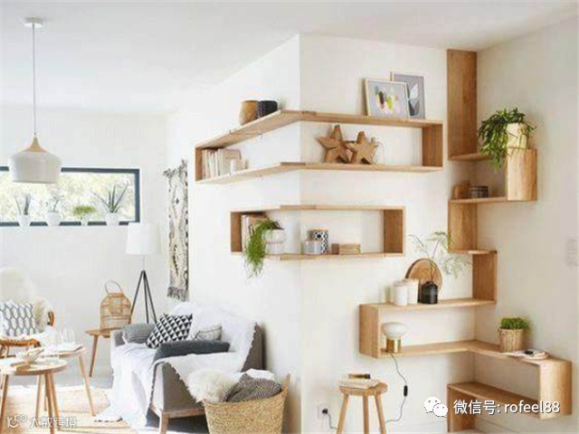 转角搁板安装不会难,一般可以把板子一个一个钉上,或者左右墙壁交错钉,增加趣味。也可以做几层搁板,摆放饰品,搭配绿植,美观大方还有点小清新。入墙式搁架,更契合墙面角度,一点也不浪费转角空间。