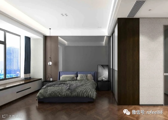 再配以蓝色的床作为空间的亮点,打破空间的沉闷,营造出时尚精致、气质优雅的居住生活空间,让居住者的身体与灵魂得到彻底的放松。