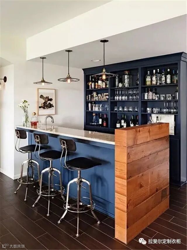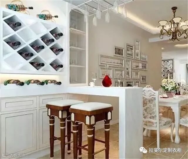 3、最后,吧台连带着酒柜一体化设计,新颖独特,极富时尚感。