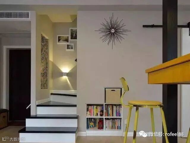 拉斐尔全屋定制来给大家讲讲,利用楼梯下方的空间,打造了一组嵌入式书柜,放孩子看的绘本,高度刚好合适!