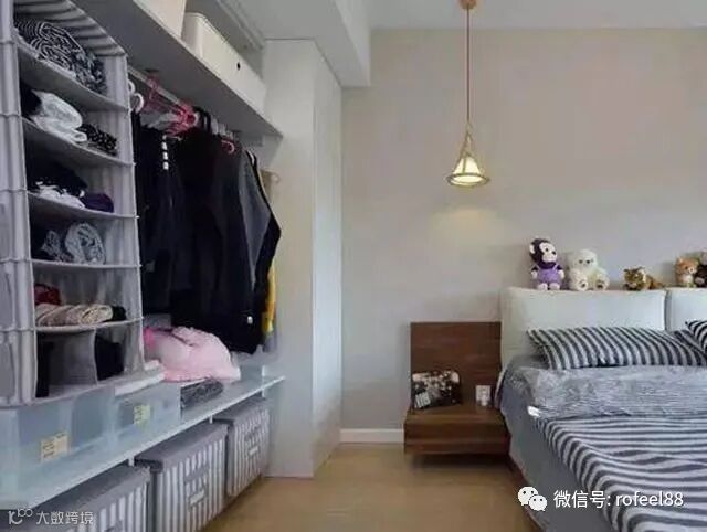 二楼是长条形户型,长长的走廊延伸至独立衣帽间,置顶储物柜有着超强的收纳功能。