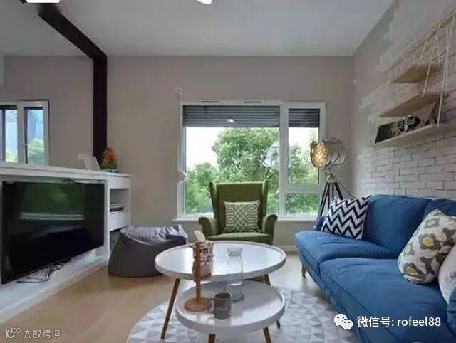 拉斐尔全屋定制来给大家讲讲,客厅蓝色双人沙发搭配上一个绿色的单人沙发,清新朴实,再摆放上一套白色北欧风茶几组,错落相依,轻便实用。