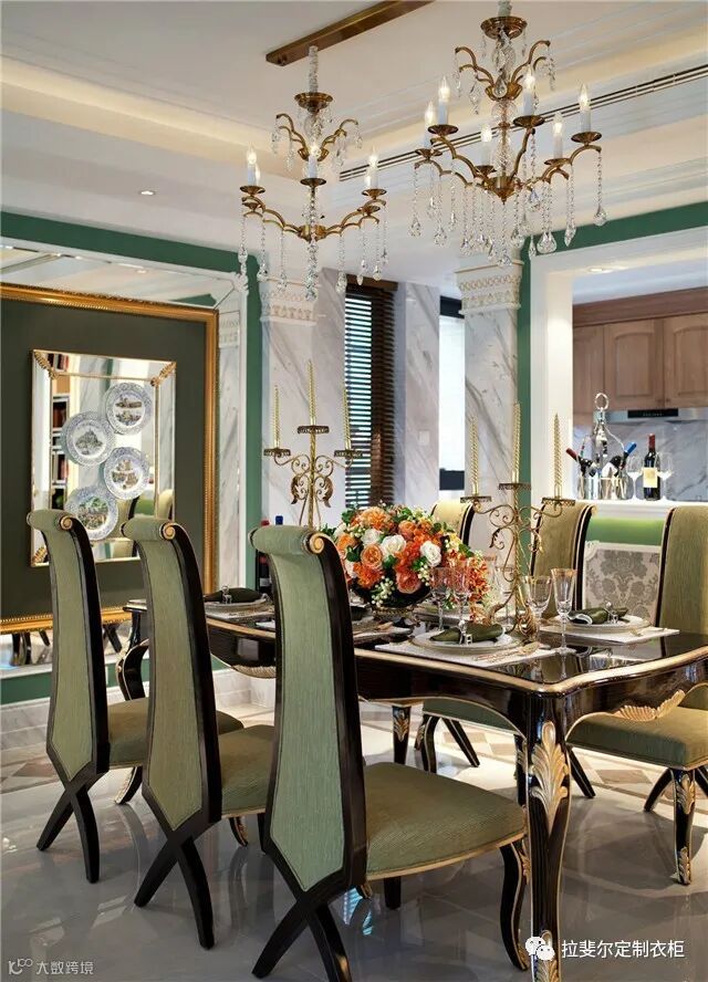 欧洲古典风格的吊灯,灵感来自古时人们的烛台照明方式,那时人们都是在悬挂的铁艺上放置数根蜡烛。如今很多吊灯设计成这种款式,只不过将蜡烛改成了灯泡,但灯泡和灯座还是蜡烛和烛台的样子。