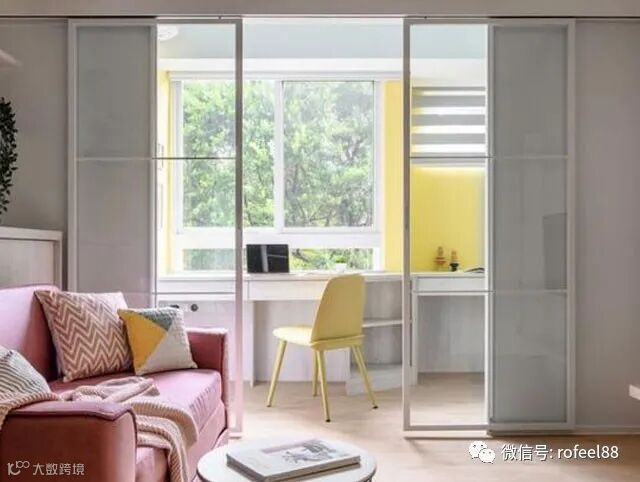拥有厚实隔墙的房间虽然保有隐私,在小坪数空间中却不见得适用。开放式设计一直是小宅较常见的格局配置,减少厚重实墙、串联不同空间,这样的复合式格局,才能放大空间感,只是在装潢时更要依生活习惯规划出合理的动线,居住动线才更流畅。重视隐私及安全感的屋主,可将实墙改为玻璃拉门,除了界定场域之外,通透明亮的材质,也具有放大视觉的效果。
