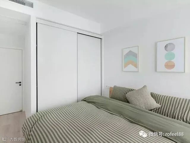 拉斐尔家具来给大家讲讲,主卧整体空间以白色为主色调,看起来简约而清爽,再搭配上原木家具与灰绿色床品又让居住者感觉整个人都暖暖的,床头上的两幅画作为这个房间增添了一点时尚感,感觉非常年轻化。