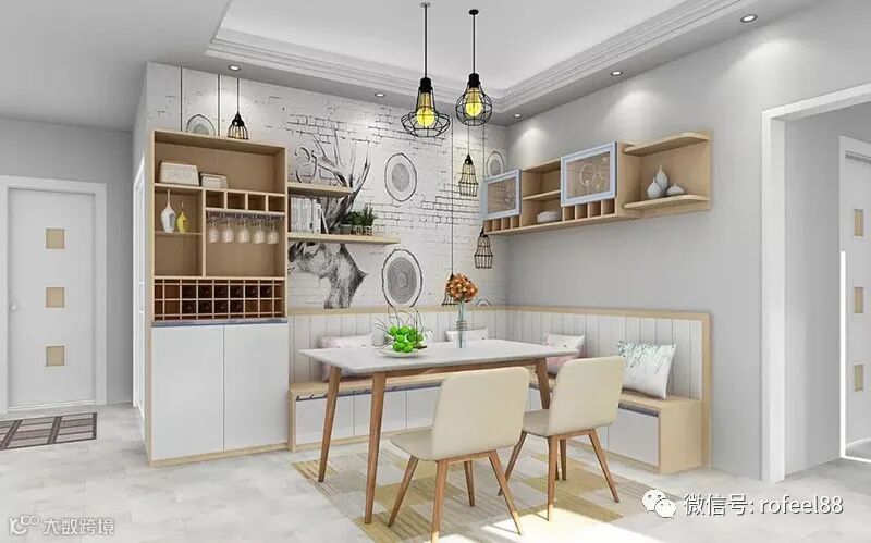小户型房子的餐厅还可以考虑设计一个卡座,卡座上方和下方都可以储物,大大节省了空间。