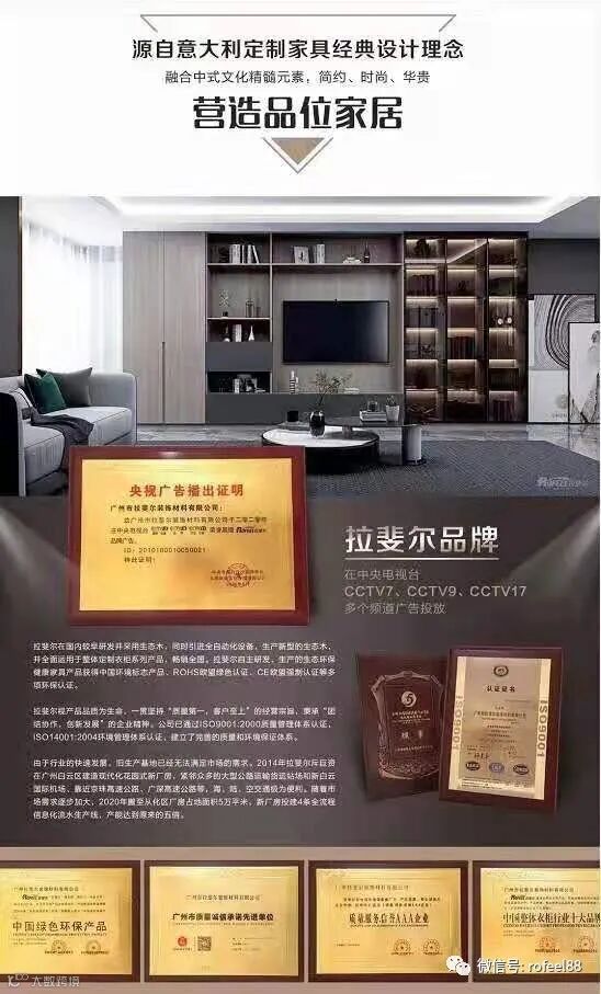拉斐尔全屋定制荣获网络评选全屋定制投资十佳品牌,拉斐尔全屋定制还获得了质量管理体系认证证书和广州市质量诚信承诺先进单位证书,创业选择拉斐尔不会错!