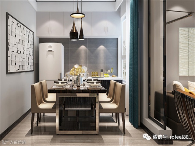 餐桌也是很灵活的,家人在做饭的时候,一起聊聊天,让家人互动更为亲密。餐桌和餐边柜作为一日三餐地方,总是被与生活、亲情、友情联系在一起,一个舒适干净的环境是很重要的,空间的设计希望能给做饭的人营造出清新的格调。