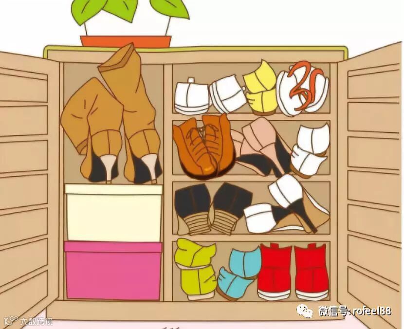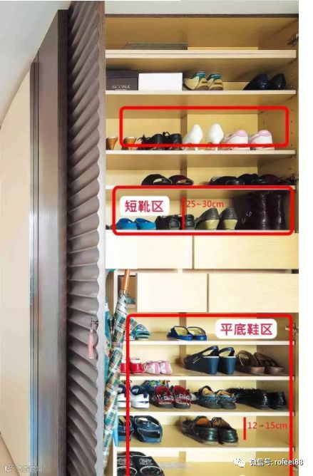 根据多数鞋子的大小,建议搁板可分成15厘米、20厘米、30厘米三种高度,以此满足不同鞋子的高度,合理利用空间。