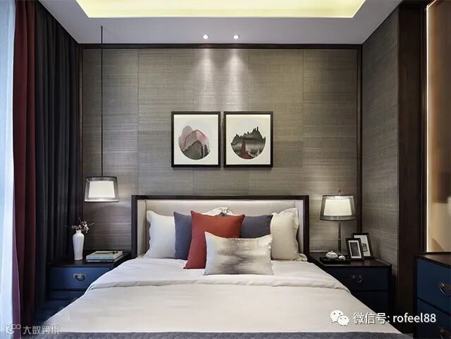 拉斐尔最后来讲讲卧室,一般很多卧室都会用吸顶灯或吊灯,一盏就能照亮整个空间,而卧室又是一个特殊的空间,是用来休息睡觉的,所灯光柔和一些更合适,太过明亮反尔会让人兴奋。那么我们卧室可以选择使用无主灯,无主灯就是通过一些辅助灯光来满足照明需求。