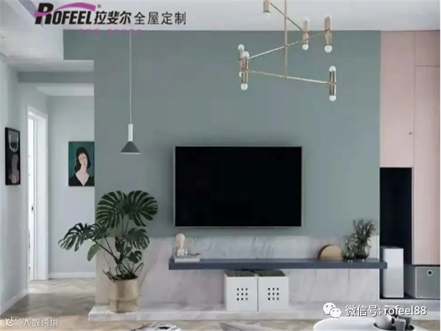为了让大白墙不那么单调,可以用一些装饰画挂在背景墙上或者放一些绿植在电视柜上,简单大气。需要注意的是装饰画的颜色不要太跳跃,最好与家中的家居颜色相呼应。