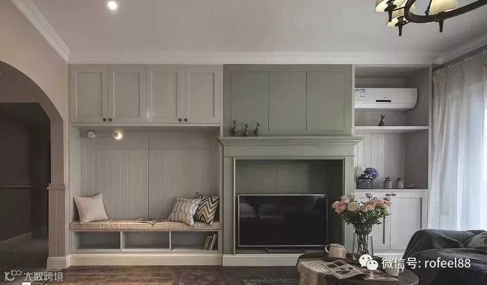 电视背景墙只是用来摆放电视,那就显得浪费了,我们不妨既考虑美观性,又兼顾实用性,在上面多打一整面柜子怎么样,这样我们就可以放任何物品,假如觉得拥挤,不妨打一组矮柜,这样整个居室空间也能扩容。