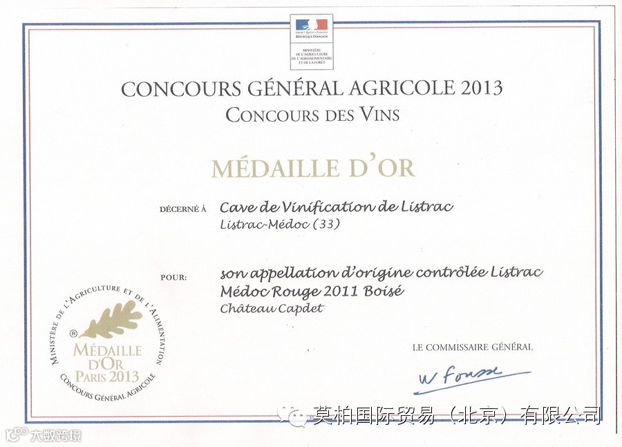 2011年份:巴黎农业博览会金奖2013